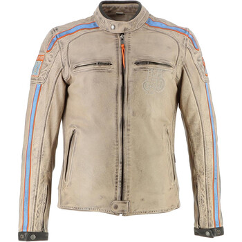 Helstons - Blouson Club Man - cuir Beige / Orange / Bleu Clair