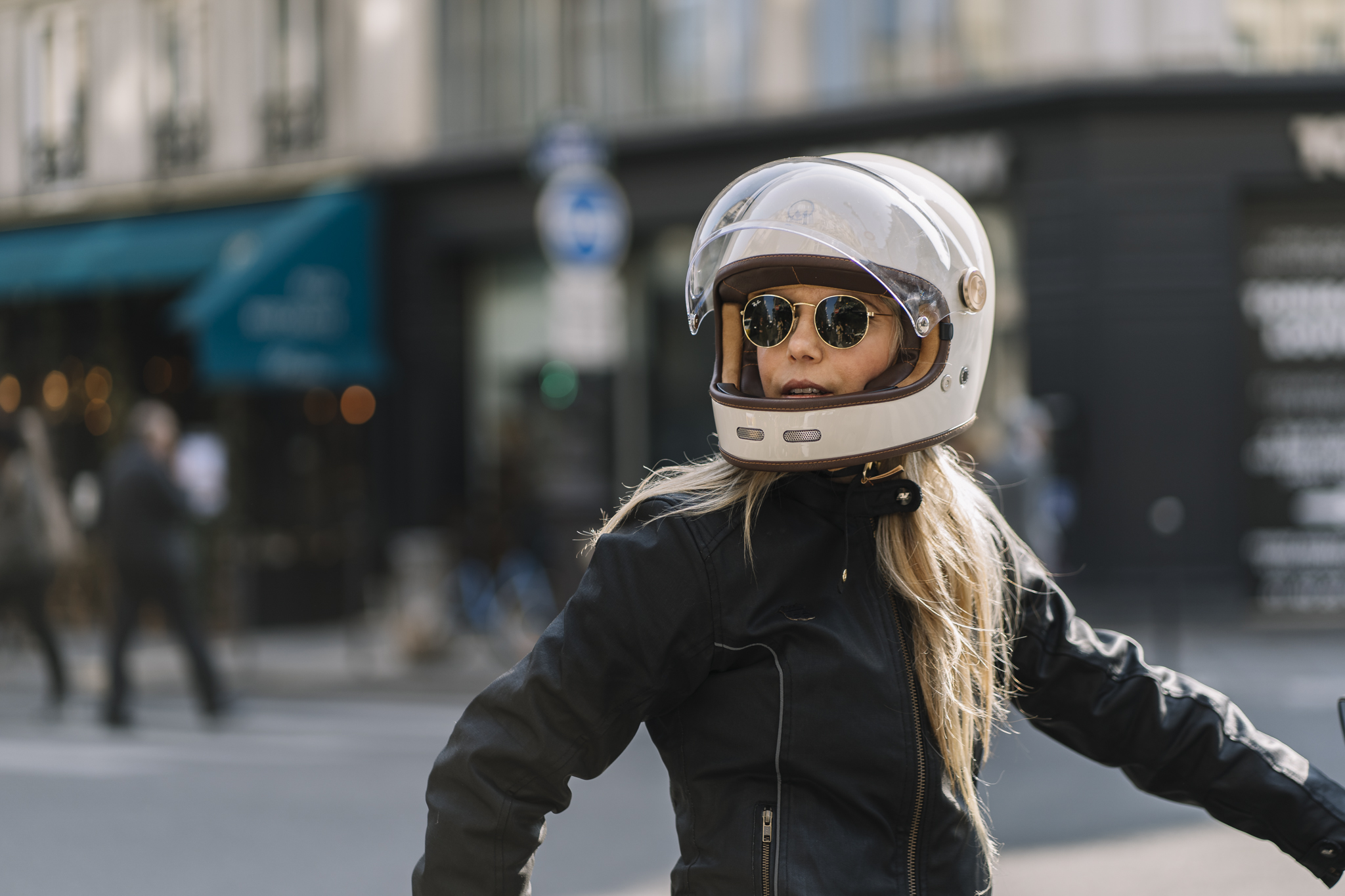 - le casque tout-terrain vintage : comme son appellation l’indique, ce type de casque s’adresse aux amatrices de moto-cross et d’aventure. Il est souvent assorti d’une paire de lunettes rétro pour un look authentique.